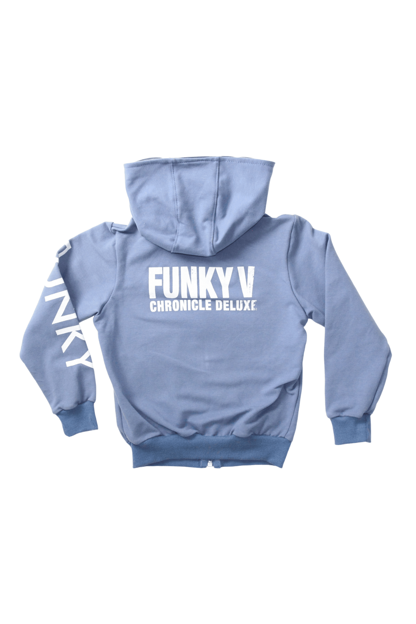 Dizajn: Moderan dizajn u teget boji, sa upečatljivim natpisom "FUNKY" duž rukava, na leđima i diskretnim printom "V STATE OF MIND" na grudima. Kapuljača i rajsferšlus čine je izuzetno praktičnom za oblačenje i svlačenje.